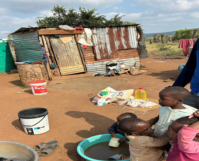 In addition to projects requested by the community, the 2024 team felt led to fund a house for Make’ (Mother Ntombi), a grandmother who lived with her five grandchildren in a tiny one-room tin shack that leaked badly. When she asked for prayer for an adequate home, our team members sensed that God wanted us to be part of answering that prayer. Your contributions made it possible for a solid two-room house to be built for her.